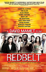 Hace tiempo que Mamet dejó de hilar tan fino como lo hiciera en aquellas milimétricas charadas que fueron «Casa de juegos» o «Las cosas cambian»; pero aún conserva su estilo impecable, su clasicismo, y a Joe Mantegna (aunque sea en labores secundarias). En «Cinturón Rojo» casi todo parte de conexiones vagas o confusas, cuando no absolutamente cogidas por los pelos, y ése es el caso de la irrupción en pantalla de Emily Mortimer, a la postre desencadenante del grueso de la trama; un ejemplo notorio de cómo forzar situaciones con el único propósito de levantar de la nada estructuras argumentales poco verosímiles. Aunque es el cine un juego de trucos e ilusiones casi siempre, los buenos tahúres jamás dejan asomar sus cartas por la manga. Mamet vive de las rentas, tira de oficio y rara vez aburre; pero no es ese perfil bajo lo que se espera de alguien que ha brillado con fuerza como director y escritor en el pasado. No son de recibos los laureles para los más listos de la clase cuando se limitan a aprobar por los pelos.