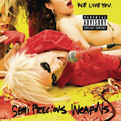 Con un look a lo Frank N’Further, provocaciones de otro tiempo (ese “she only o wants to fuck Jesus”) y padrinos tan sospechosos como Kate Moss o la mismísima revista Vogue, se presenta en sociedad Justin Tranter respaldado por sus Semi Precious Weapons. Este nuevo paladín del hedonismo gay y el egocentrismo carga, además, el saco de las suspicacias mostrando un cierto desdén hacia las figuras que, en teoría, marcan a fuego la música que encierra “We love you”. Ni Iggy Pop, ni Bowie, ni losNew York Dolls, ni Alice Cooper parecen significar gran cosa para Justin, a pesar de que la sombra de todos y cada uno de ellos es más que obvia entre los temas del debut de Semi Precious Weapons. Pero no todas las señales que emiten estas armas semi preciosas son negativas. Siendo fiel a su pulcritud estética (pulcritud cuidadosamente grotesca) y a sus ansias de celebridad, Justin despacha diez piezas de rock and roll lascivo a caballo entre esas influencias (no declaradas) de sus mayores y el encanto trendy de contemporáneos como Juliette & the Licks o The Kills.