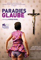 Dejamos atrás a la señora oronda de Paraíso: Amor, aquella que buscaba sexo fácil entre los jóvenes keniatas que rondaban su lujoso resort y volvemos, siempre de la mano de Ulrich Seidl, a Austria, a seguir los pasos de su hermana, una fanática religiosa al borde de la enajenación que aprovecha las vacaciones de verano para flagelarse ante un crucifijo y llevar la palabra del Señor adonde nadie la ha pedido.